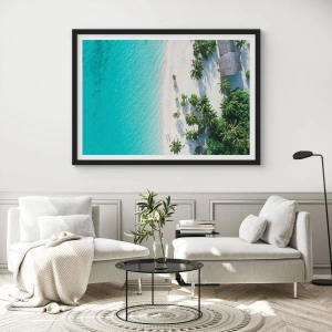 Póster en marco negro - Vista aérea de una playa tropical con palmeras y mar azul. - 50x70cm - Vacaciones en el paraíso - Decoración de pared moderna para salón y dormitorio ARTTOR