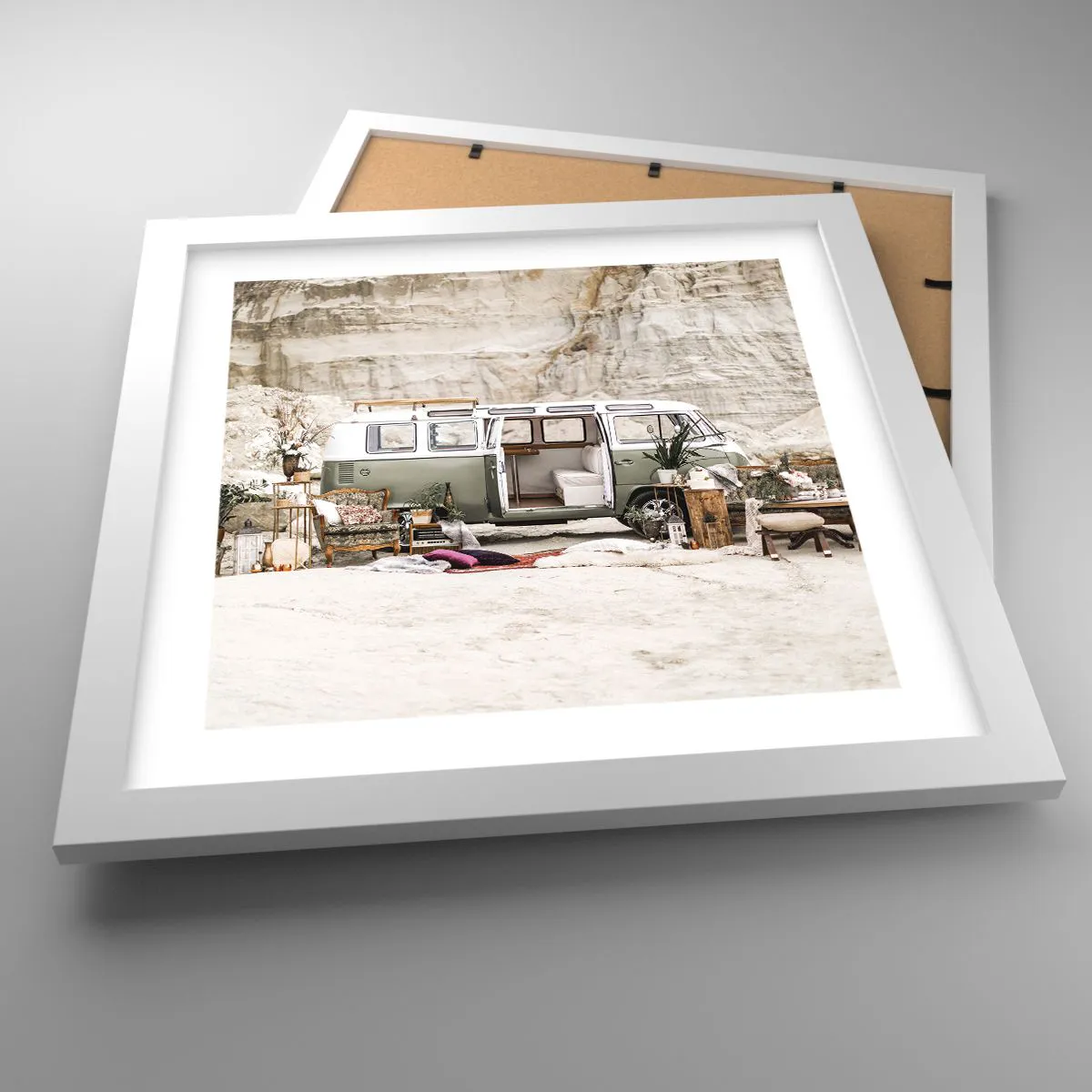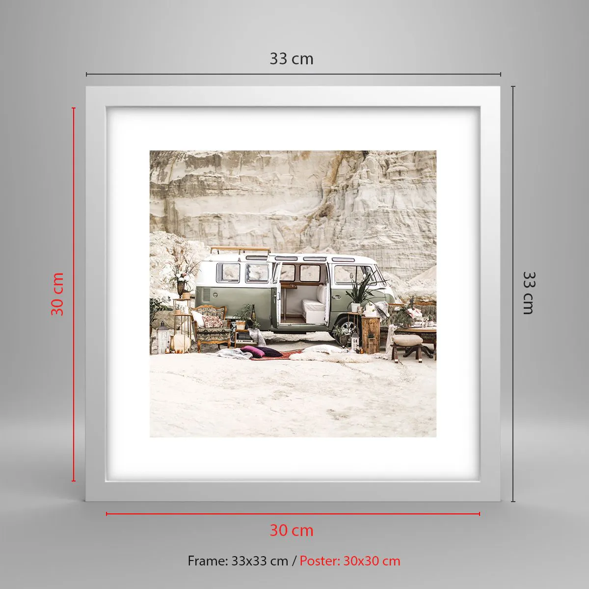 Póster en marco blanco - Hora de empezar el viaje - 30x30 cm