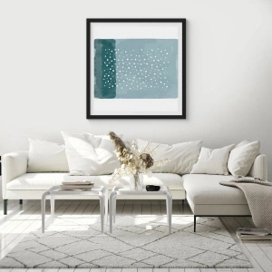 Póster en marco negro - Una pintura minimalista en tonos azules con puntos. - 70x50cm - Creación sobre azul - Decoración de pared moderna para salón y dormitorio ARTTOR