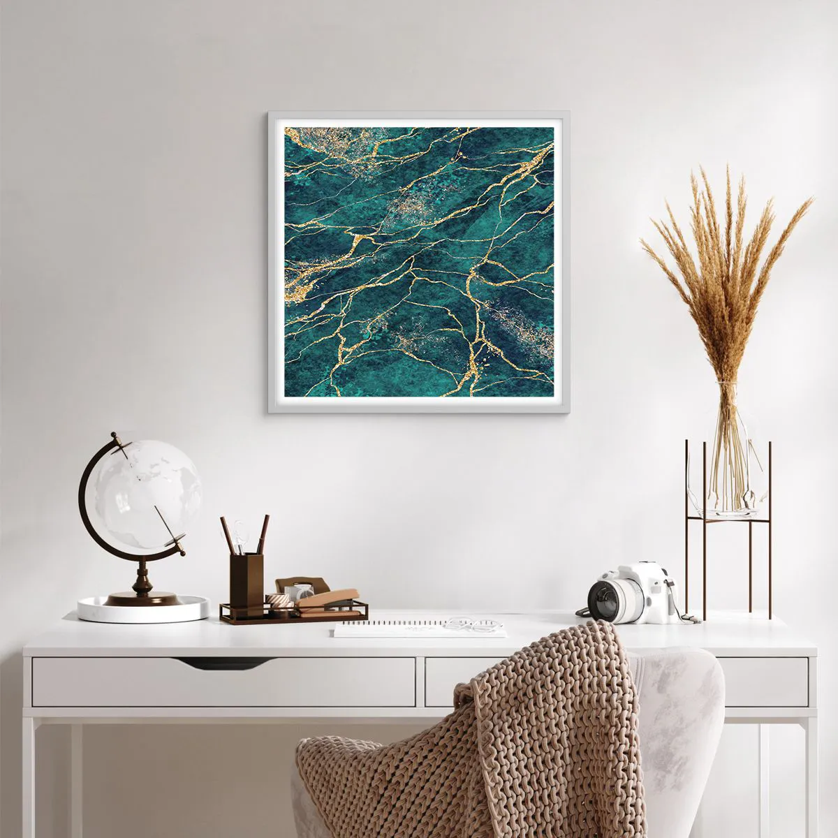 Póster en marco blanco - Riachuelos de oro - 60x60 cm