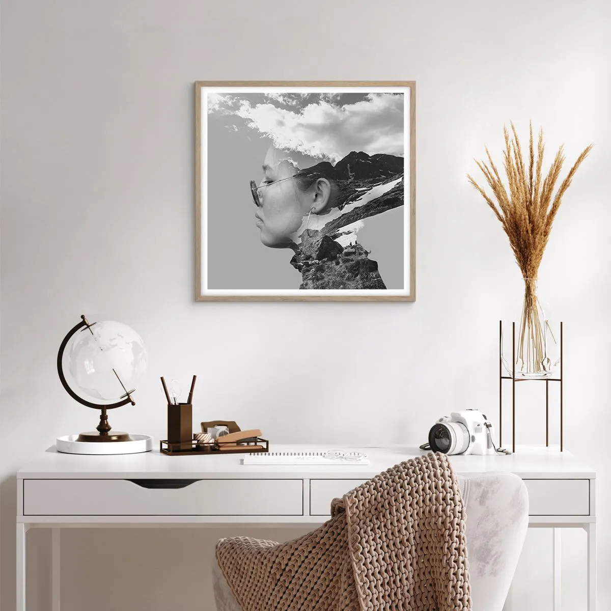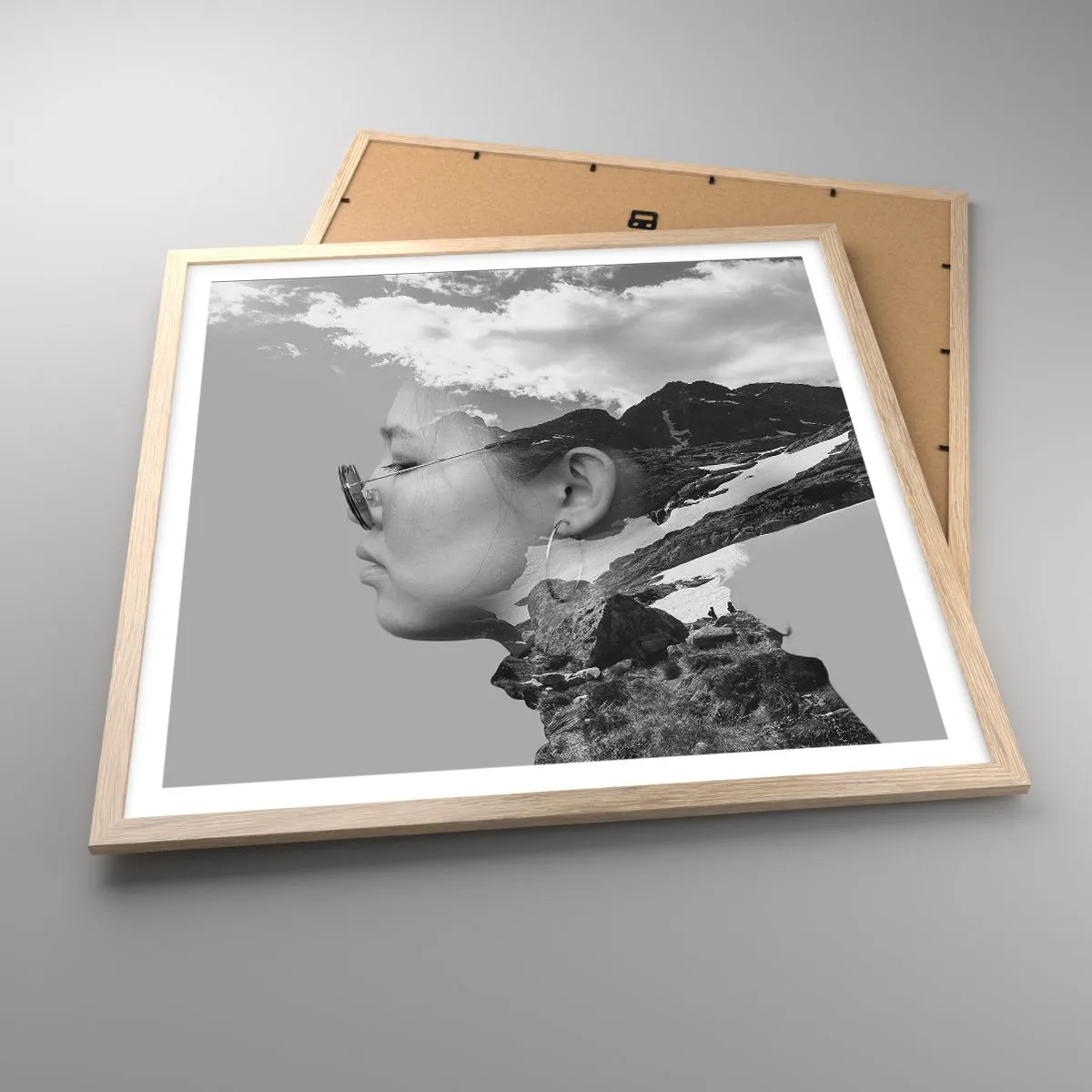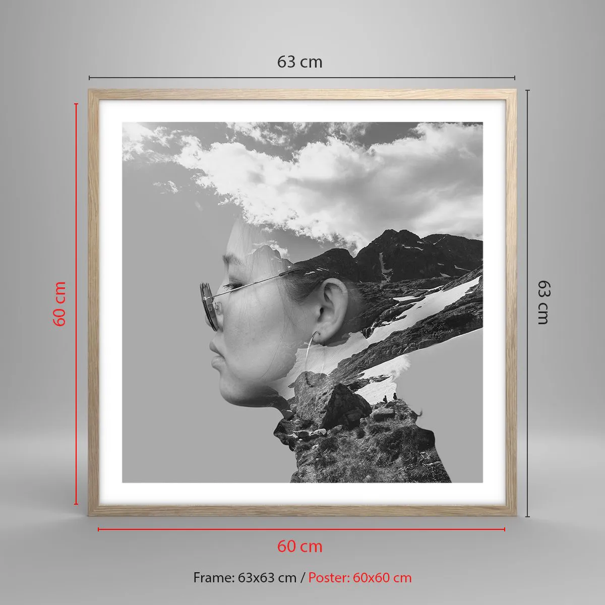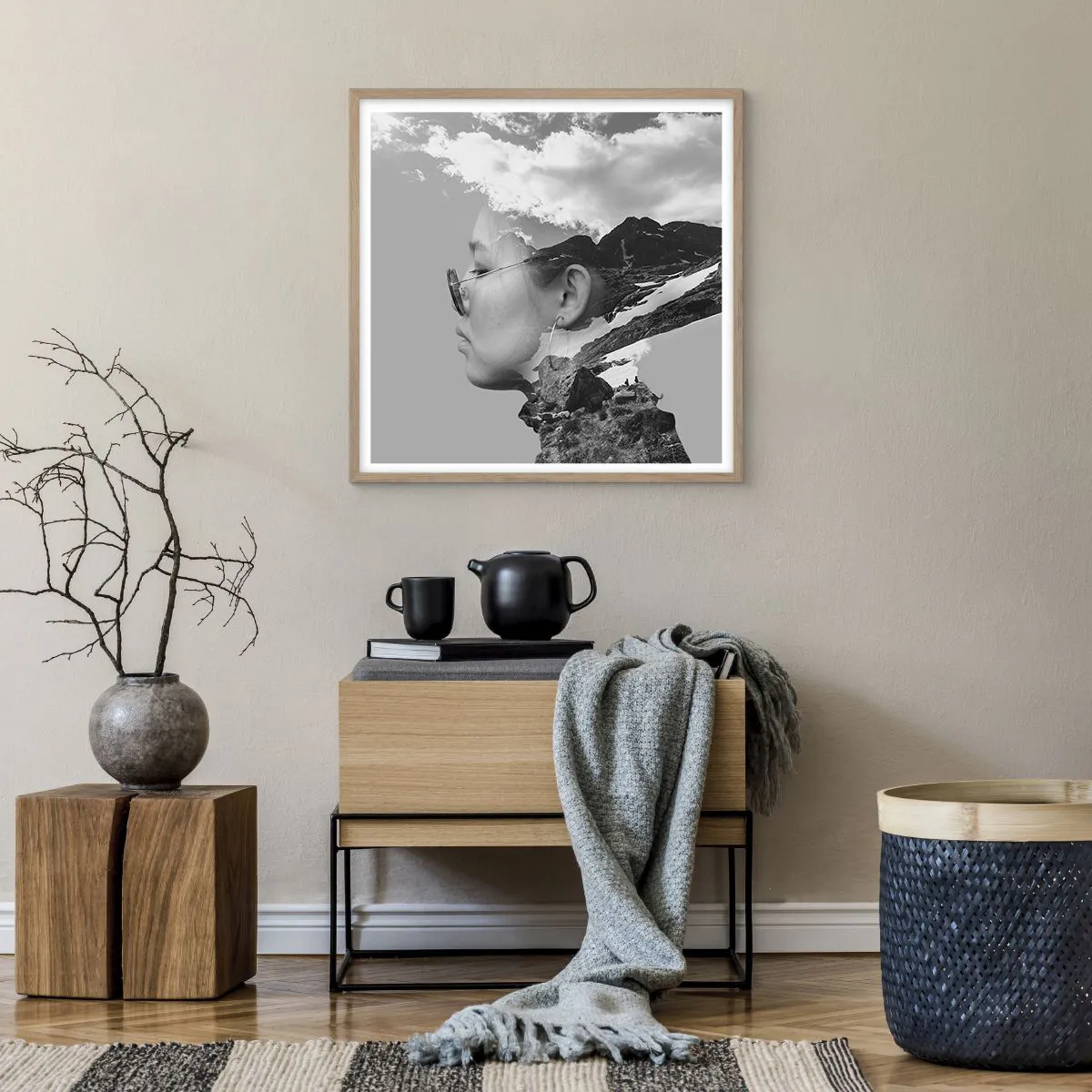 Póster en marco roble claro - Retrato sobre montañas y nubes - 60x60 cm