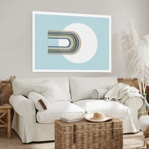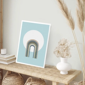 Póster - Un arco minimalista con tonos pastel sobre un fondo circular. - 50x70cm - Una atracción irresistible - Decoración de pared moderna para salón y dormitorio ARTTOR