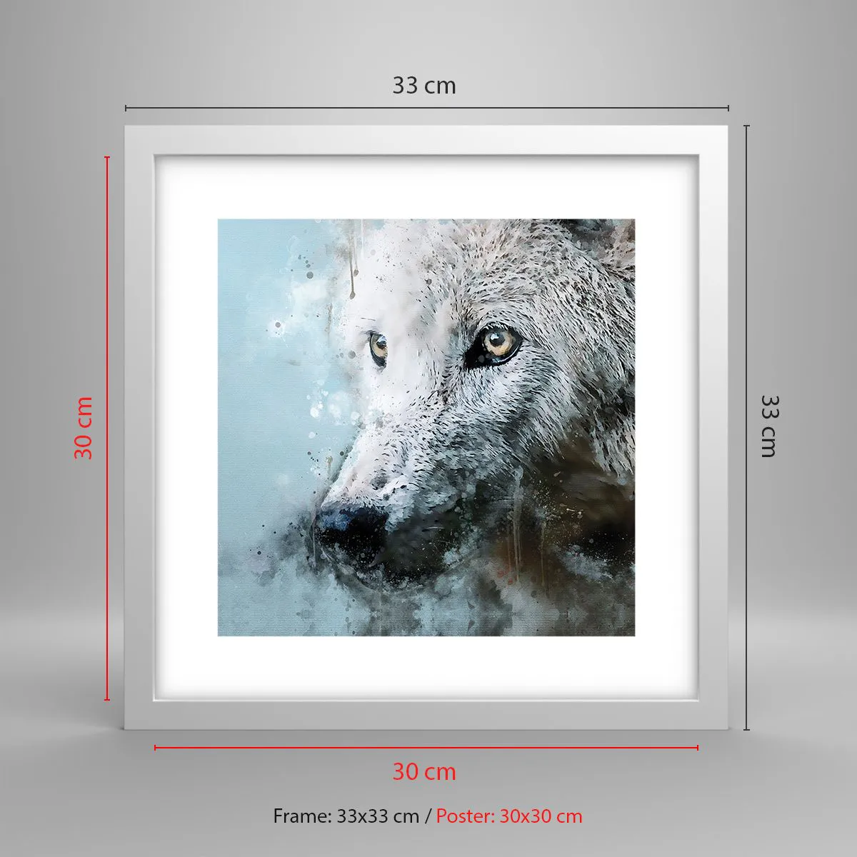 Póster en marco blanco - Conoce el alma del lobo - 30x30 cm