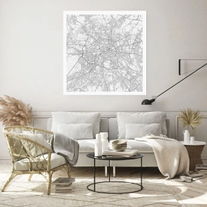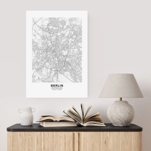 Póster - Mapa detallado de la ciudad en blanco y negro - 100x70cm - Flor de Berlín - Decoración de pared moderna para salón y dormitorio ARTTOR