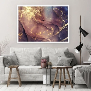Póster - Composición abstracta con tonos dorados y morados. - 100x70cm - Materia y espíritu - Decoración de pared moderna para salón y dormitorio ARTTOR
