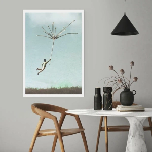 Póster - Una figura flotando en un tallo de diente de león contra el cielo. - 50x70cm - Bailando con la brisa - Decoración de pared moderna para salón y dormitorio ARTTOR