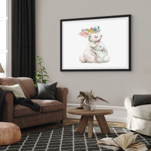 Póster en marco negro - Lindos conejos en colores pastel - 70x50cm - En ningún lugar mejor que con mamá - Decoración de pared moderna para salón y dormitorio ARTTOR