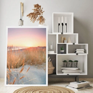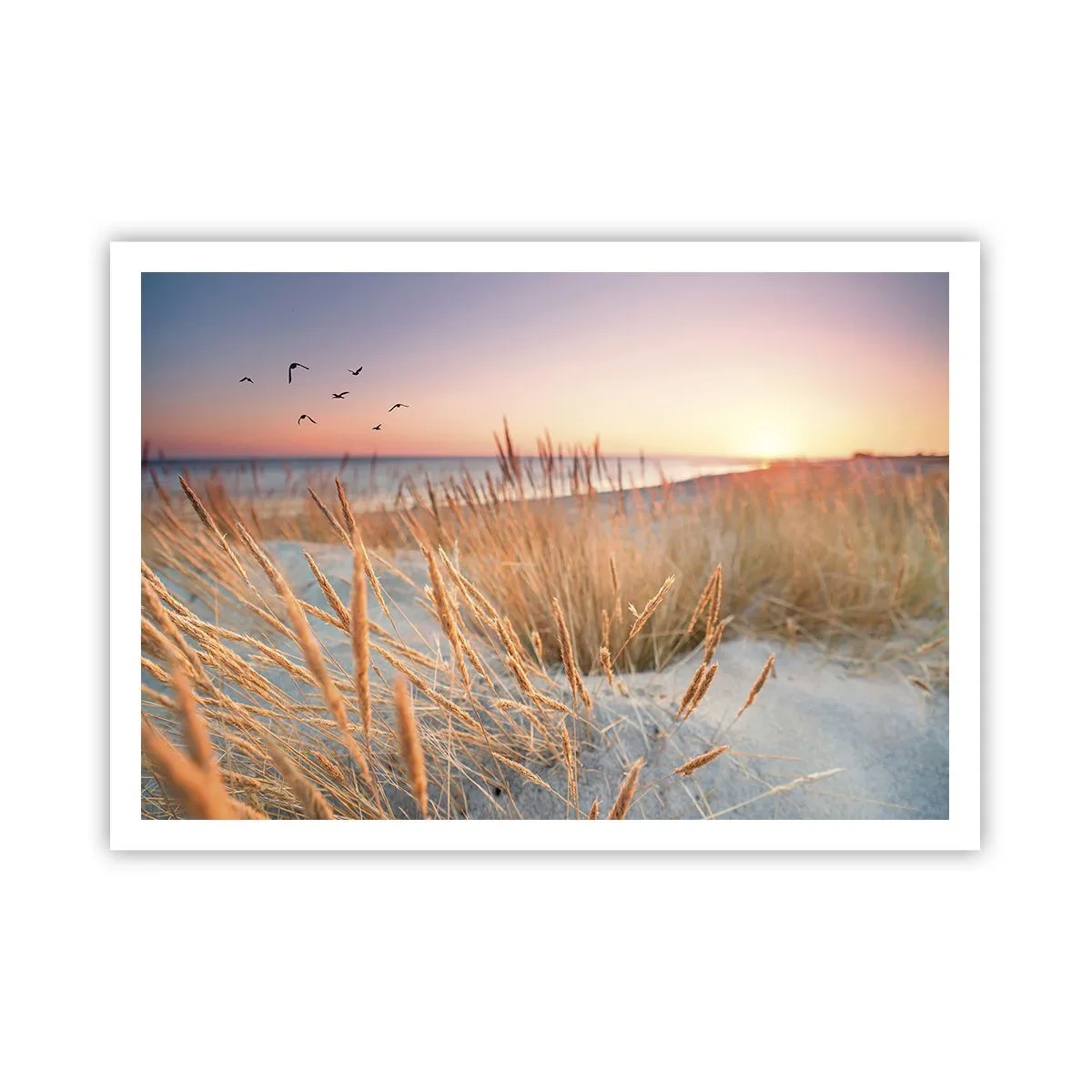 Póster - Playa al atardecer con hierbas altas - 100x70cm - Dulce nana del Báltico - Decoración de pared moderna para salón y dormitorio ARTTOR