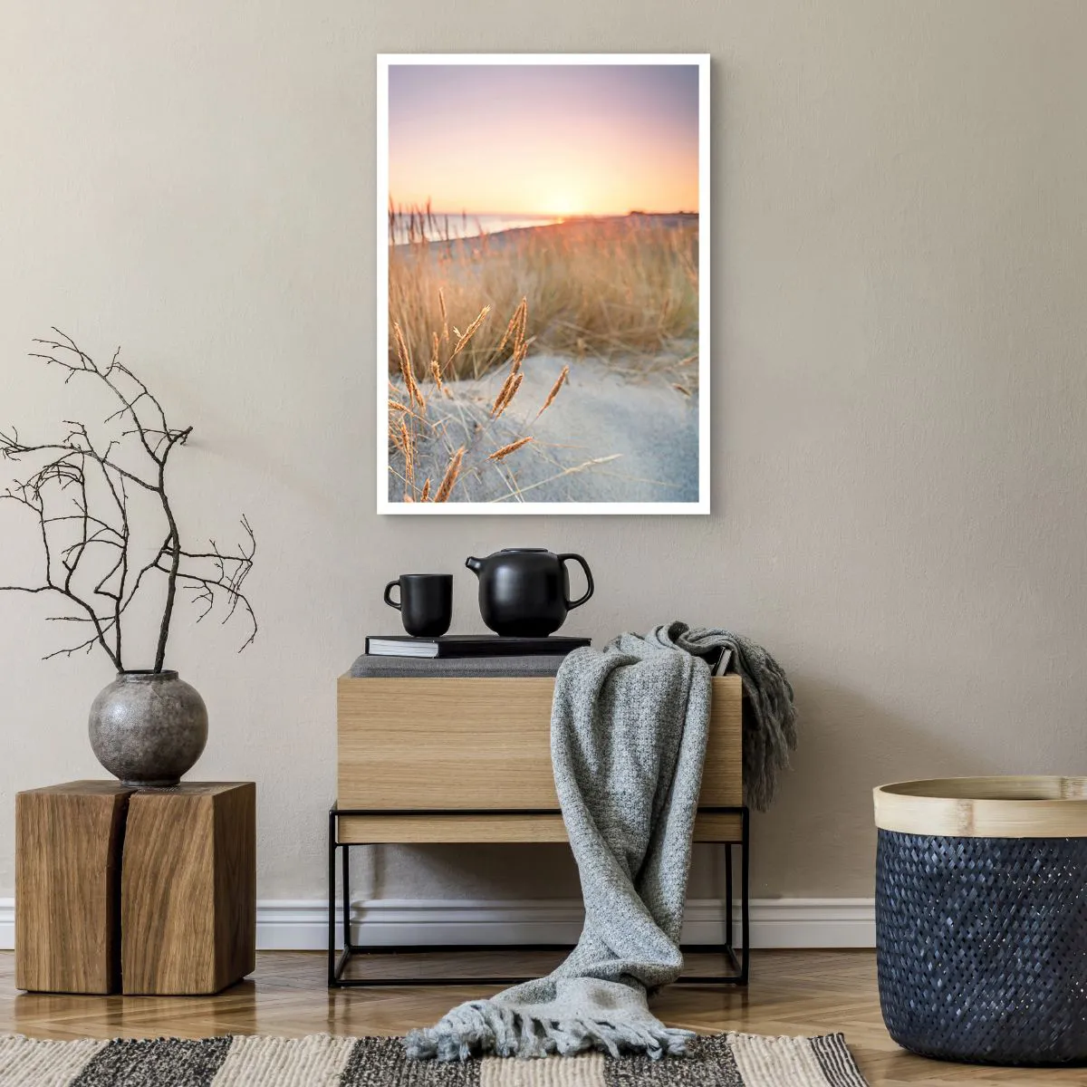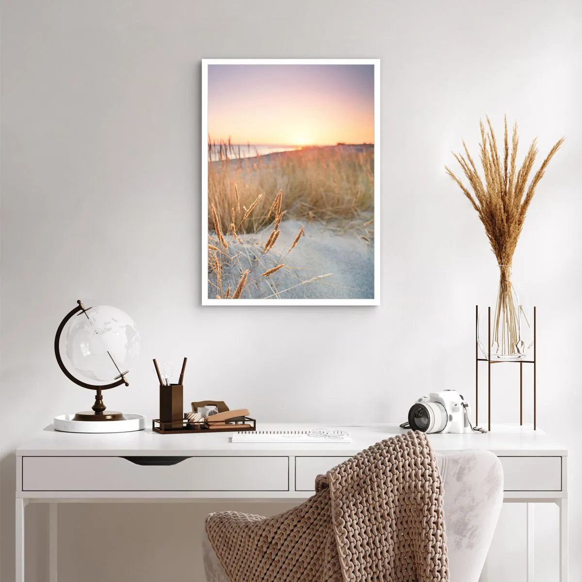 Póster - Las hierbas de las dunas iluminadas por el sol poniente - 50x70cm - Dulce nana del Báltico - Decoración de pared moderna para salón y dormitorio ARTTOR