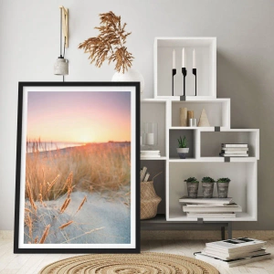 Póster en marco negro - Playa al atardecer con hierbas altas - 100x70cm - Dulce nana del Báltico - Decoración de pared moderna para salón y dormitorio ARTTOR