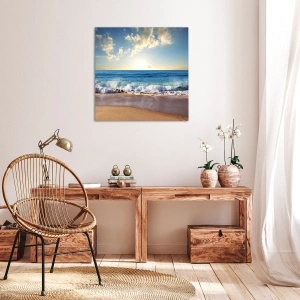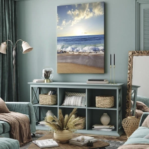 Cuadro sobre lienzo - Impresión de Imagen - Una playa soleada con olas rompiendo en la orilla. - 70x50cm - Movimiento y quietud al mismo tiempo - Decoración de pared moderna para salón y dormitorio ARTTOR