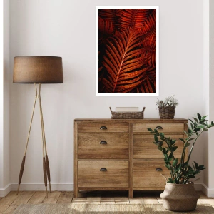 Póster - Primer plano de hojas tropicales rojas - 100x70cm - Las brasas de la vida - Decoración de pared moderna para salón y dormitorio ARTTOR