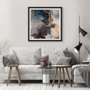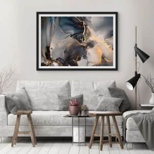 Póster en marco negro - Oro abstracto y gris sobre lienzo - 70x50cm - La vida de una piedra - Decoración de pared moderna para salón y dormitorio ARTTOR