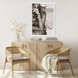 • Mujer, Boho, Vintage, Blanco y negro, Personas, Moda, Para el recibidor, Para el salón, Para el dormitorio, , Gris, Blanco y negro, Cuadrado