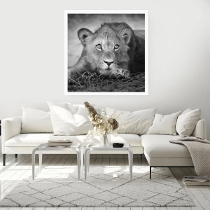 Póster - Retrato monocromático de un león joven acostado - 100x70cm - Un cachorro real - Decoración de pared moderna para salón y dormitorio ARTTOR