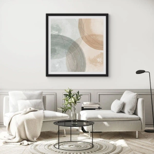 - El póster presenta formas geométricas en tonos tierra pastel, creando una composición armoniosa y moderna. Perfecto para interiores como salas de estar, dormitorios u oficinas. El marco negro realza la elegancia de la decoración.