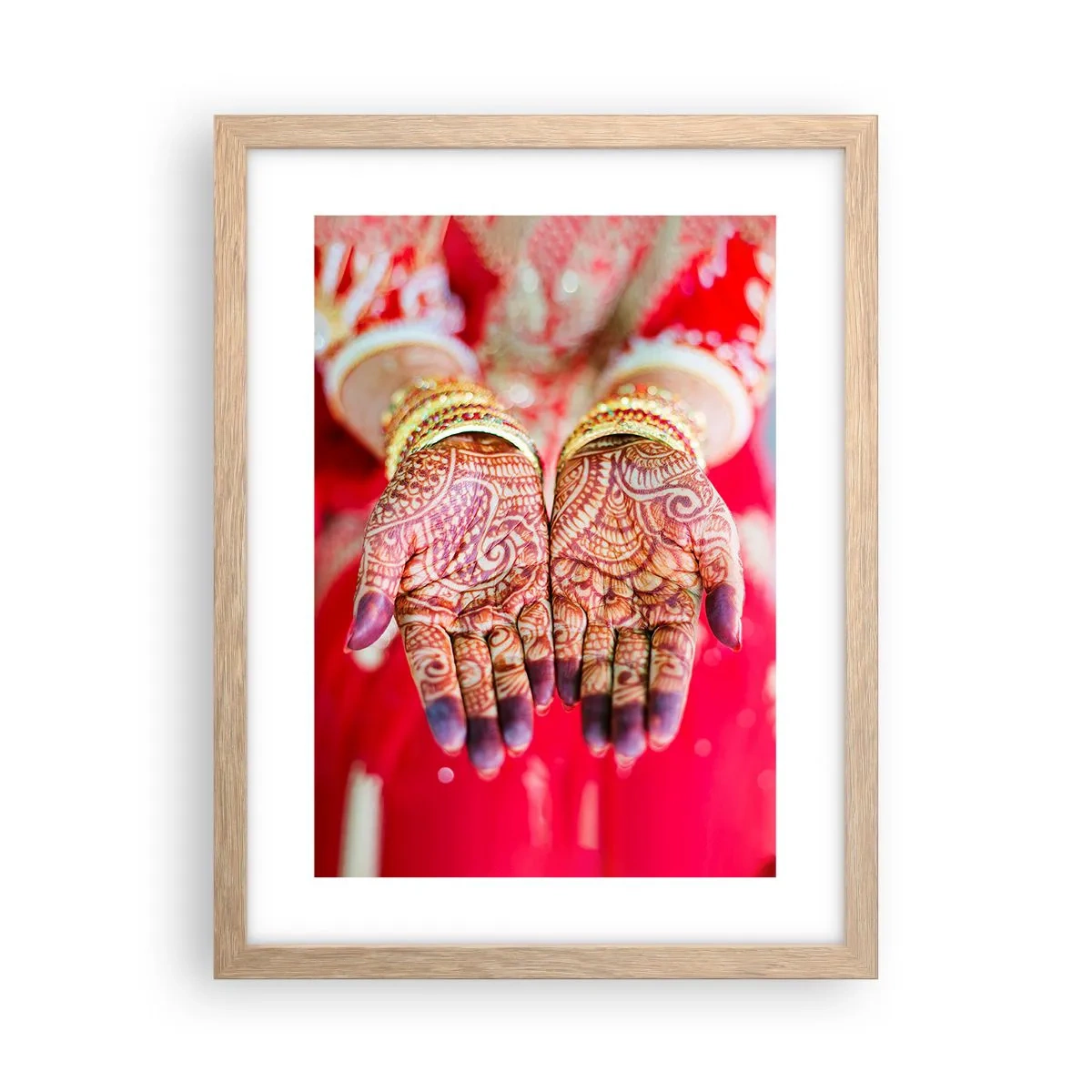 Póster en marco roble claro - Ritual con las manos - 30x40 cm