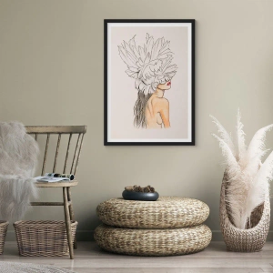 Póster en marco negro - Retrato de una mujer con decoración de plumas en estilo artístico. - 100x70cm - Belleza coronada - Decoración de pared moderna para salón y dormitorio ARTTOR