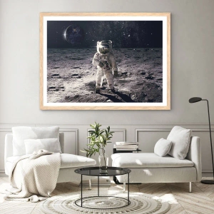 Póster en marco roble claro - Saludos desde la Luna - 100x70 cm