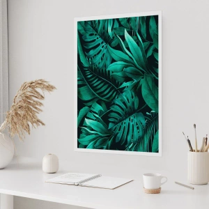 Póster - Hojas tropicales en tonos verdes. - 50x70cm - Profundidad del verde tropical - Decoración de pared moderna para salón y dormitorio ARTTOR