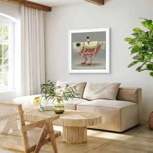 Póster en marco blanco - Jinete del pescado - 50x40 cm