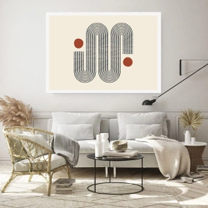 Póster - Patrón geométrico con líneas y círculos rojos. - 50x70cm - De principio a fin - Decoración de pared moderna para salón y dormitorio ARTTOR