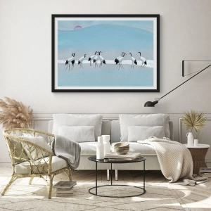 Póster en marco negro - Una ilustración minimalista de grúas sobre un fondo pastel. - 50x70cm - Después de un día caluroso - Decoración de pared moderna para salón y dormitorio ARTTOR