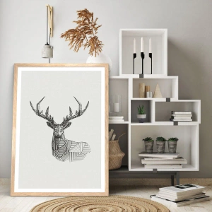 Póster en marco roble claro - Ciervo en estilo cubista - 40x40 cm