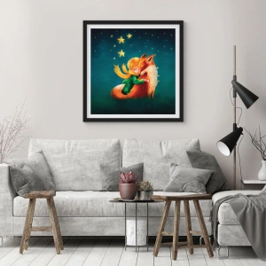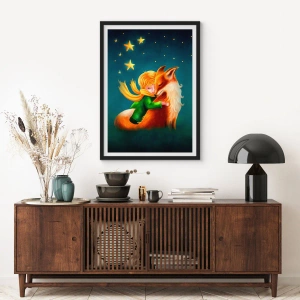Póster en marco negro - Un niño con un zorro en un entorno mágico con estrellas. - 100x70cm - El Principito - Decoración de pared moderna para salón y dormitorio ARTTOR