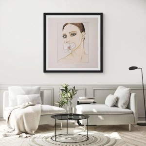 Póster en marco negro - Retrato de una mujer con una orquídea en colores delicados. - 100x70cm - Elegancia y belleza - Decoración de pared moderna para salón y dormitorio ARTTOR