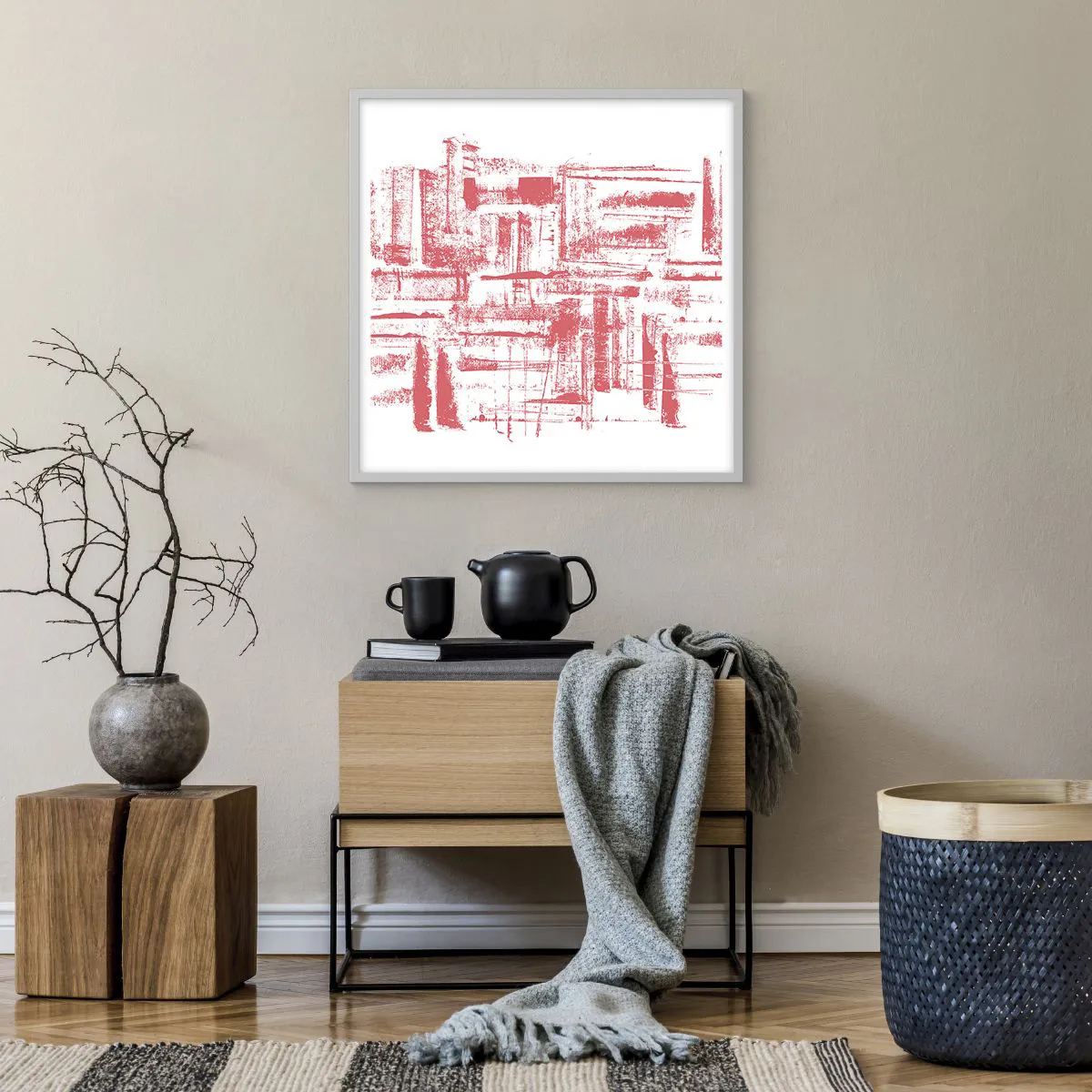 Póster en marco blanco - Ciudad roja - 60x60 cm