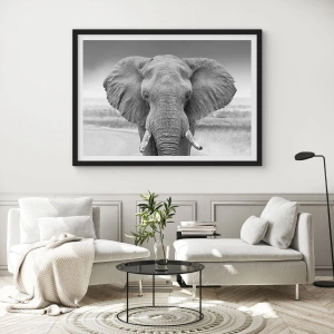 Póster en marco negro - Retrato de un elefante en blanco y negro - 70x50cm - Bienvenido a mi mundo - Decoración de pared moderna para salón y dormitorio ARTTOR