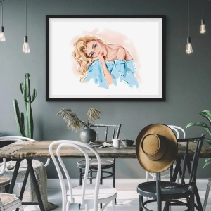 • Mujer, Moda, Graficos, Personas, Moda, Pastel, Para la cocina, Para el recibidor, Para el salón, Para el dormitorio, Blanco azul, Cuadrado