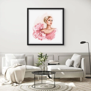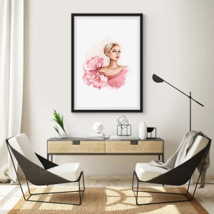 Póster en marco negro - Retrato de una mujer con un vestido rosa sobre un fondo claro. - 100x70cm - Recuérdame como una pintura... - Decoración de pared moderna para salón y dormitorio ARTTOR