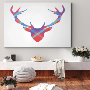 El lienzo "Imagen geométrica de un ciervo sobre fondo claro" es una decoración original que cautiva por su sencillez y diseño moderno. El motivo geométrico del ciervo, creado con líneas de colores, aporta una armonía única y un carácter artístico al interior.