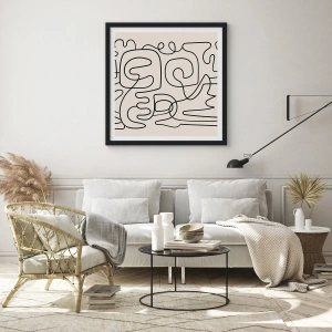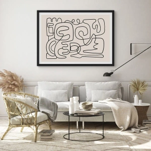 Póster en marco negro - Patrón de arte lineal abstracto en negro sobre un fondo claro - 100x70cm - El camino correcto - Decoración de pared moderna para salón y dormitorio ARTTOR