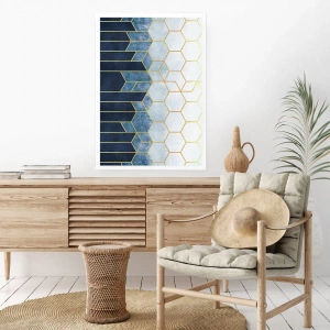 Póster - Composición geométrica en tonos azul marino y dorado con hexágonos. - 50x70cm - Composición rítmica visual - Decoración de pared moderna para salón y dormitorio ARTTOR