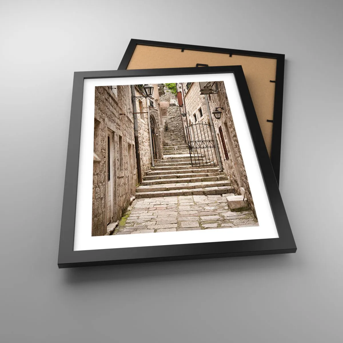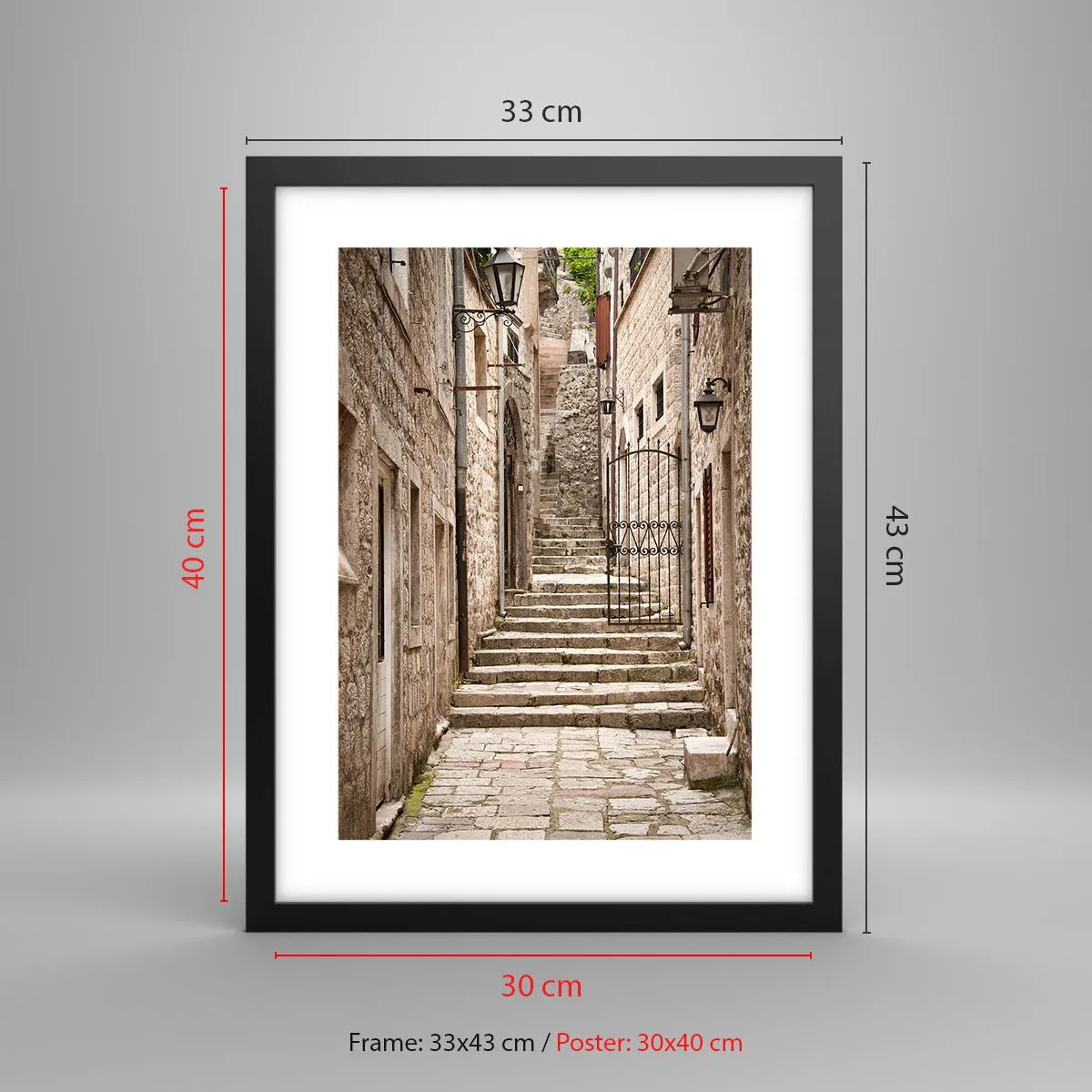 Póster en marco negro - Una antigua calle mágica - 30x40 cm