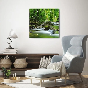 "Navega en un mar verde" es un reloj de pared único que representa un pintoresco arroyo rodeado de la exuberante vegetación de una selva tropical. Esta pintura irradia paz y armonía, creando una atmósfera única de cercanía a la naturaleza en el interior.
