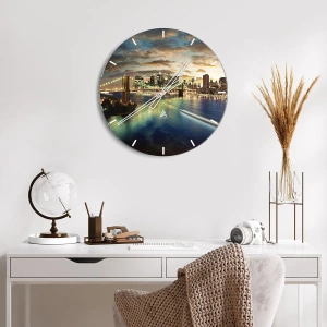Reloj de pared - Reloj de vidrio - Un atardecer iluminado sobre Manhattan - 40x40 cm
