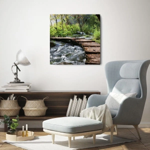 Reloj de pared - Reloj de vidrio - Sobre una cascada de espuma - 40x40 cm