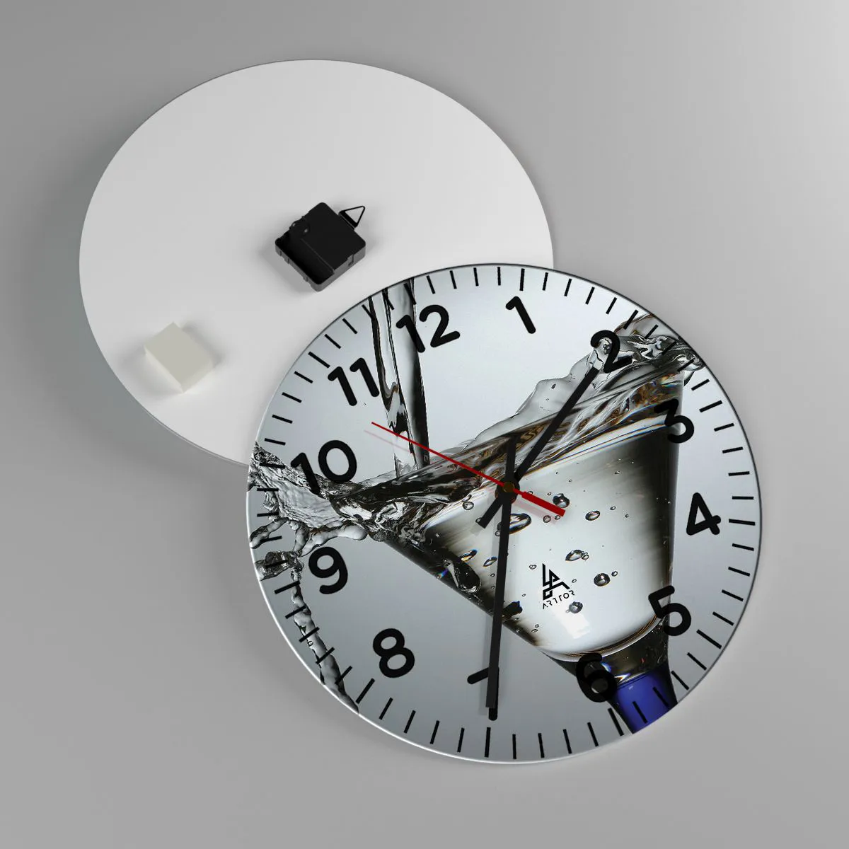 El reloj está vidrio con un espesor de 4mm. La tecnología de fabricación cumple con la clase de seguridad 2B2 según la normativa PN-EN 12600:2004 que garantiza la resistencia al impacto. El reloj de cristal está listo para ser instalado en la pared, tiene un colgador de metal fijado en la parte posterior del reloj y un espaciador de espuma para regular la distancia entre el reloj y la pared. El reloj tiene un mecanismo de flujo silencioso que funciona con una pila de 1,5 V - AA (pila no incluida).