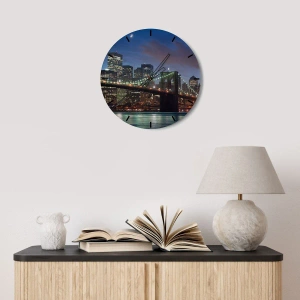Reloj de pared - Reloj de vidrio - Puente de Brooklyn con vista a la ciudad por la noche - 30x30cm - Una noche iluminada - Decoración de pared moderna para salón, cocina y dormitorio ARTTOR