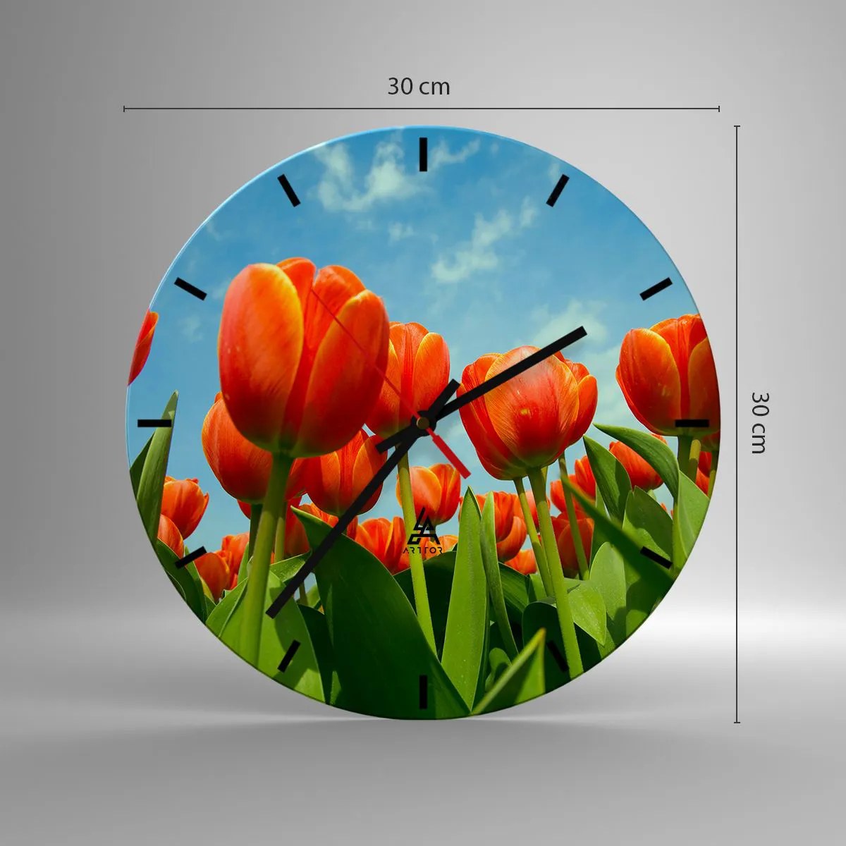 Reloj de pared - Reloj de vidrio - Tulipanes rojos contra un cielo azul - 30x30cm - Excepto el cielo azul no necesitan nada en la vida - Decoración de pared moderna para salón, cocina y dormitorio ARTTOR