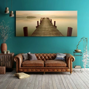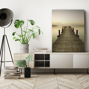 El lienzo "Muelle de madera en un lago tranquilo por la mañana" es una decoración única que aporta armonía y paz natural al interior. La composición muestra un pintoresco muelle que conduce a la tranquila superficie del lago, rodeado por la suave luz matutina, creando una atmósfera de paz y tranquilidad.