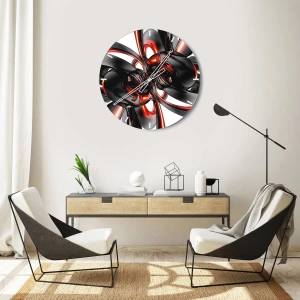 Reloj de pared - Reloj de vidrio - Movimiento en grafito y rojo - 30x30 cm