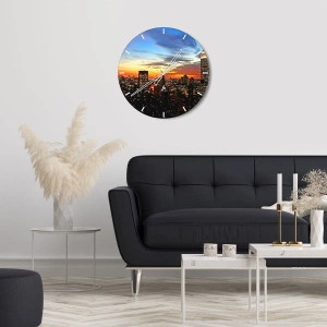 Reloj de pared - Noche Americana Luminosa - Panorama de la ciudad al atardecer con un cielo brillante