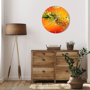 Reloj de pared - Reloj de vidrio - Una piña sumergida en agua sobre un fondo degradado naranja. - 30x30cm - Jugosa frescura tropical - Decoración de pared moderna para salón, cocina y dormitorio ARTTOR