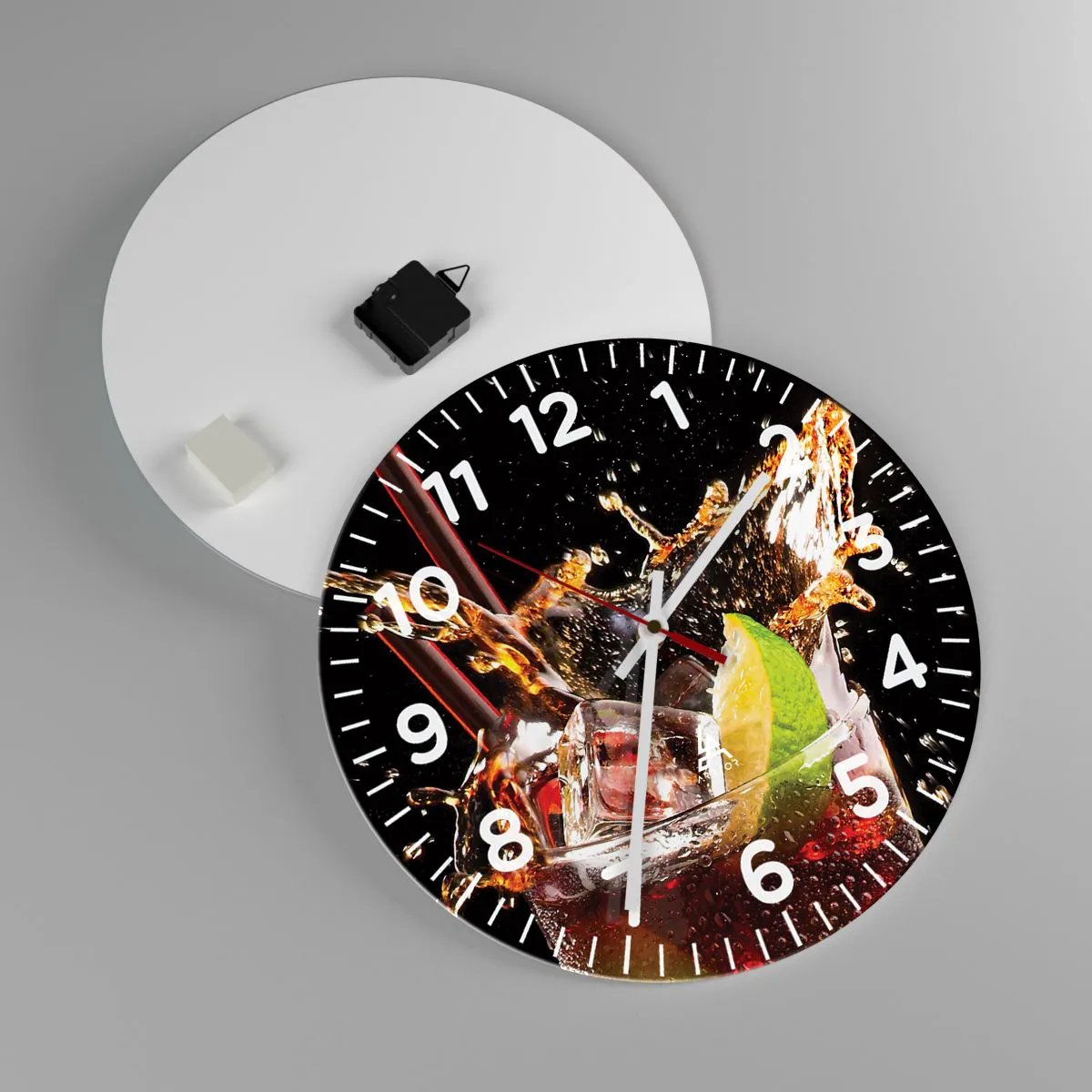 El reloj está vidrio con un espesor de 4mm. La tecnología de fabricación cumple con la clase de seguridad 2B2 según la normativa PN-EN 12600:2004 que garantiza la resistencia al impacto. El reloj de cristal está listo para ser instalado en la pared, tiene un colgador de metal fijado en la parte posterior del reloj y un espaciador de espuma para regular la distancia entre el reloj y la pared. El reloj tiene un mecanismo de flujo silencioso que funciona con una pila de 1,5 V - AA (pila no incluida).