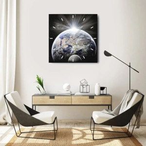 Reloj de pared - Reloj de vidrio - Vista de la Tierra al amanecer en el espacio exterior - 30x30cm - En todo su esplendor - Decoración de pared moderna para salón, cocina y dormitorio ARTTOR